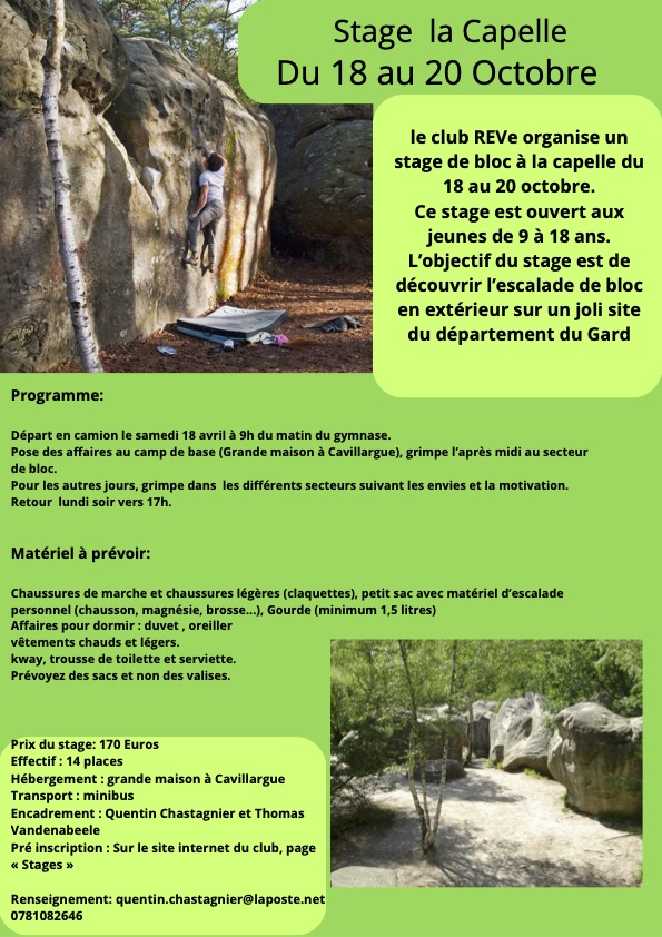 Le club d'escalade REVe organise un stage escalade de six jours à